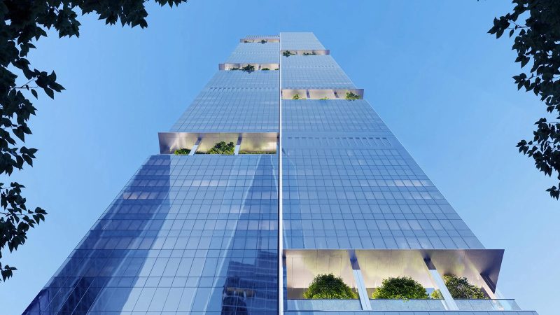 The building aims to achieve high standards of sustainability, using smart‑building technologies to optimize energy consumption and natural ventilation. Floor plates are organized to maximize daylight penetration while still offering flexible workspaces for up to 10,000 employees. Public retail and cultural spaces at the base will connect the tower to the surrounding neighborhood, enhancing pedestrian activity in the area.