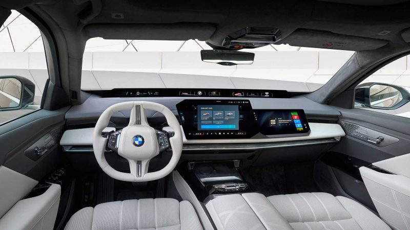 Inside, the emphasis shifts decisively toward digital luxury. The cabin integrates BMW’s latest curved display system, merging the instrument cluster and infotainment screen into a single sweeping panel. This interface runs on the newest version of the brand’s operating system, designed to streamline navigation, media, and vehicle settings through both touch and voice interaction. Materials remain a central focus, with finely grained leather, polished metal accents, and ambient lighting working together to create a calm, lounge-like environment.