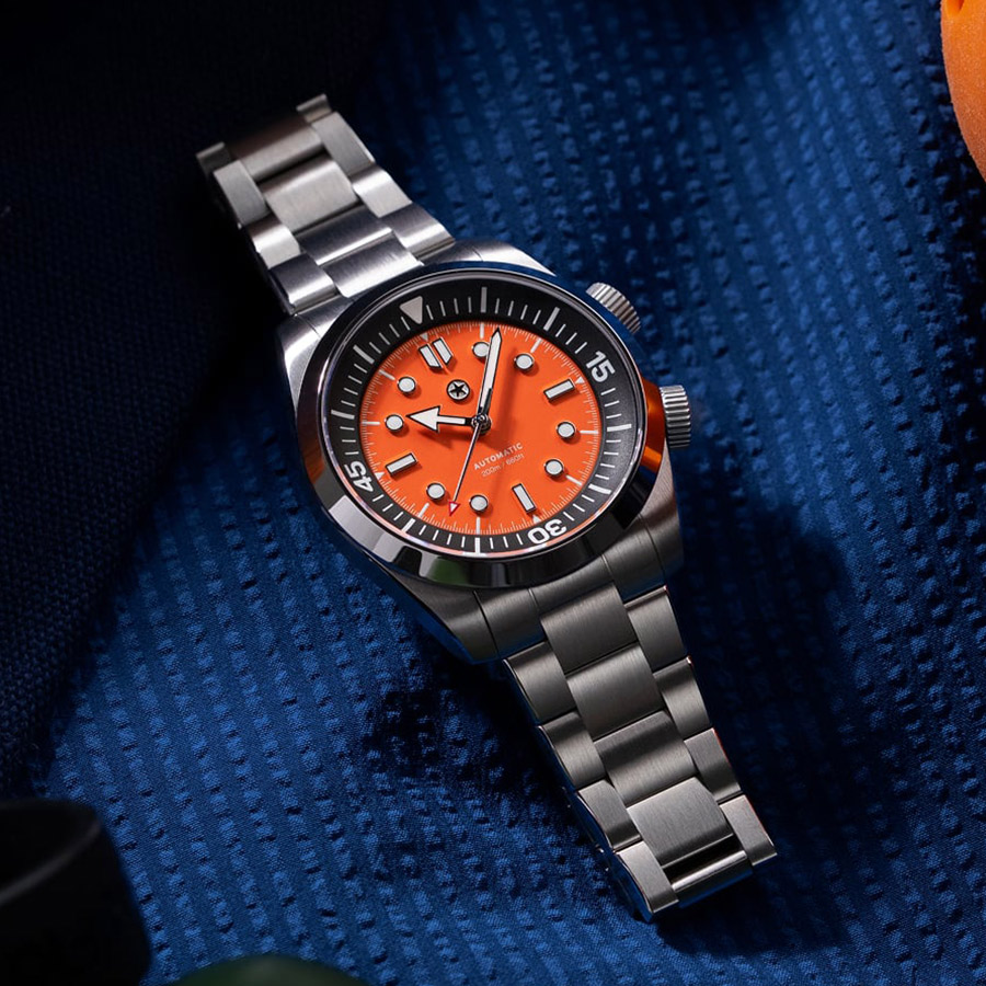 If the presale reaches 200 orders, the community can vote to unlock a third colourway. The applied markers and sword‑style hands are filled with Super‑LumiNova for legibility, and a sapphire crystal with internal anti‑reflection coating protects the dial.