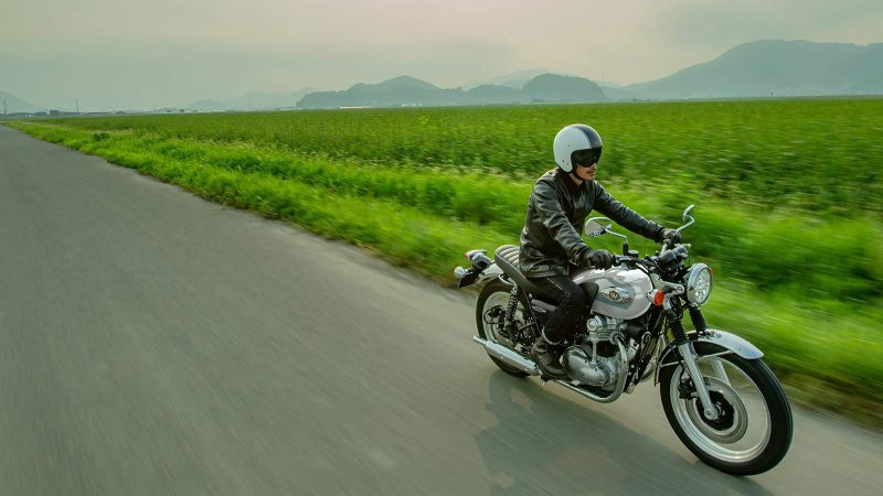 Styling cues are deliberately retro: chrome‑plated steel fenders, large round turn signals, silver alumite 19‑inch front and 18‑inch rear rims and a tuck‑and‑roll seat recall mid‑century Japanese motorcycles. The handlebar and footpeg positioning create an upright riding posture, and Kawasaki’s Advanced Dynamic Analysis design of the frame balances rigidity with compliance. A new Pearl Crystal White paint scheme contrasts with polished chrome and black engine cases, giving the bike an understated elegance.