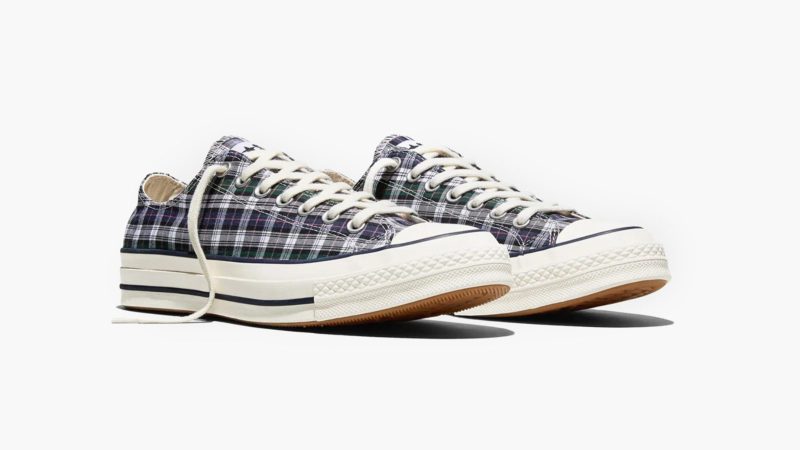The second pair is a low‑top built from heavyweight plaid canvas in blue, white and green. It echoes classic tartan shirts and pairs easily with denim or chinos. Both versions use 12‑ounce canvas and OrthoLite insoles for comfort, and both feature rubber toe caps and vulcanised soles synonymous with the Chuck 70. The low‑top is priced at $110, while pricing for the high‑top will be announced closer to launch.
