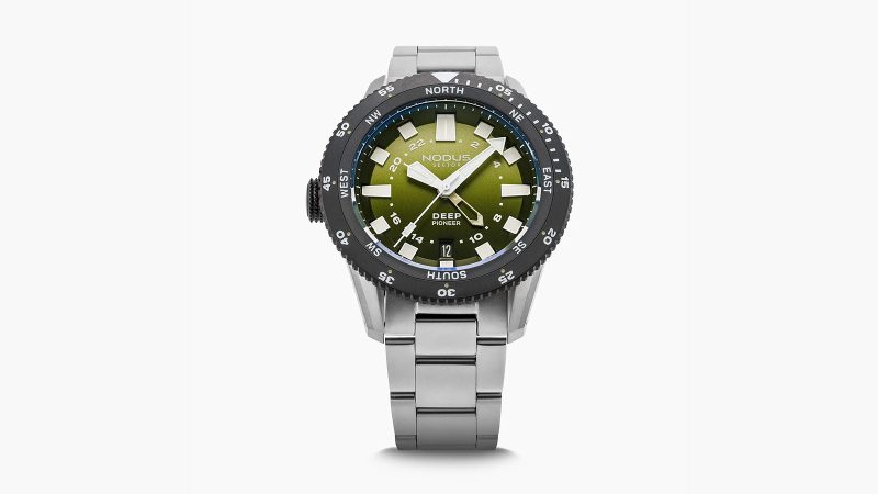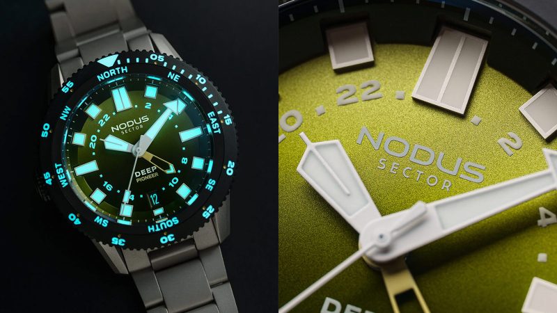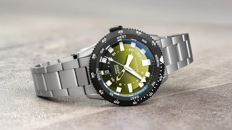Los Angeles micro‑brand Nodus is expanding its overbuilt Sector Deep lineup with a verdant twist. The new Sector Deep Pioneer ‘Ranger’ pairs the platform’s 500‑meter water resistance with a green gradient dial and a GMT complication. Inspired by the brand’s challenge to make its watches as robust as possible, the Sector Deep Pioneer features thickened crystal and caseback components and an oversized tactile bezel. The ‘Ranger’ evolution adds an eight‑point compass ring around the dial for orientation and a TMI NH34 GMT movement regulated in‑house.