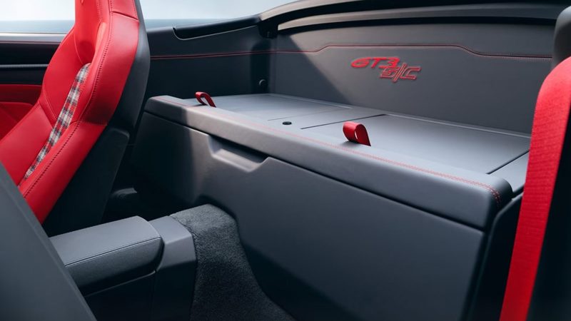 Aerodynamic elements such as a pronounced front splitter, vented front fenders and a ducktail spoiler retain downforce without the giant wing seen on coupe variants. Inside, the car features two seats upholstered in perforated leather, a titanium shift knob and minimal insulation to let the engine’s wail into the cabin. A Street Style package adds contrasting stripes and a painted roll bar for those seeking extra flair.