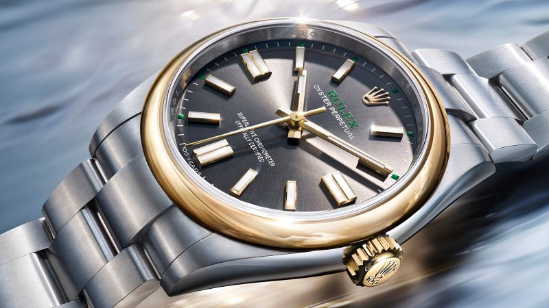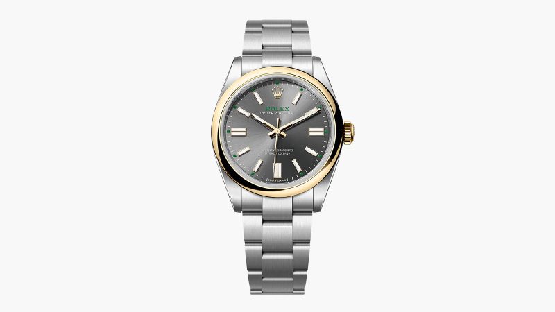 The new Oyster Perpetual 41 is presented in a yellow Rolesor configuration, pairing Oystersteel with yellow gold across the bezel and winding crown. This material combination subtly echoes early Oyster references, reinforcing the watch’s historical lineage without resorting to overt nostalgia.