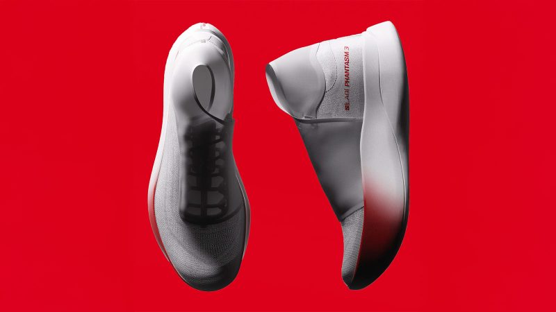 The shoe tips the scales at just 7-ounces for a men’s 9.5 and is about 10 percent lighter than the Phantasm 2 despite carrying more foam. In laboratory tests, athletes wearing the Phantasm 3 consumed 1.8–3.7 percent less oxygen thanks to the improved aerodynamics.