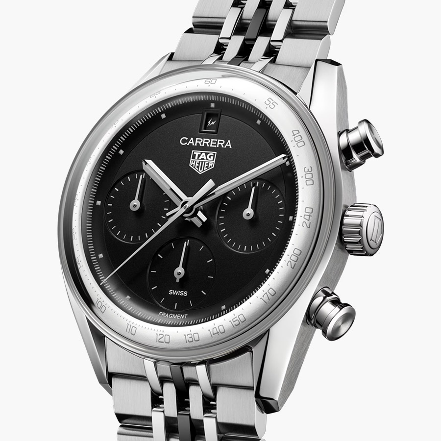 Fragment Design’s fingerprints are unmistakable: a matte black dial free of clutter, stark white markers, and the elusive Fragment “lightning bolt” discreetly placed above six o’clock. It’s the kind of visual discipline Fujiwara is known for, turning the Carrera into a piece that resonates equally with collectors and style obsessives.