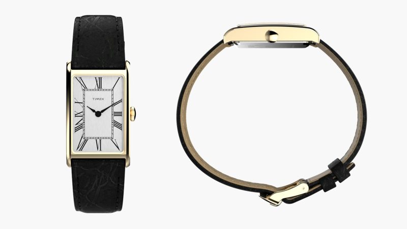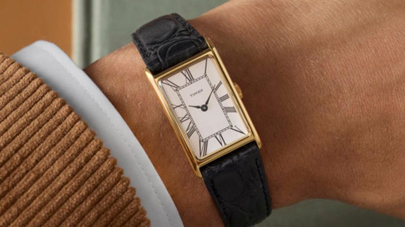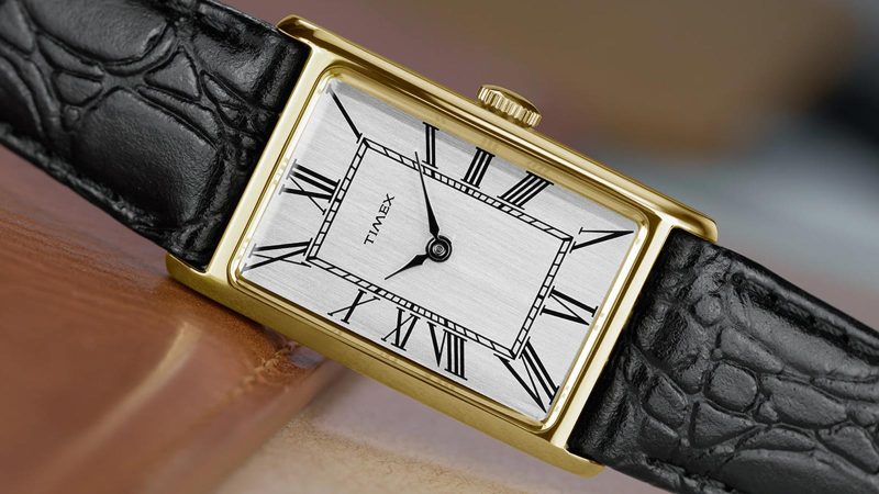 Timex has reached into its archives for a fresh take on the Lexington, a slender dress watch originally released in 1976. The new edition stays true to the original’s restrained proportions with a 21 mm rectangular case rendered in gold-tone stainless steel, featuring a mix of polished surfaces and subtle brushed accents that elevate its vintage appeal.
